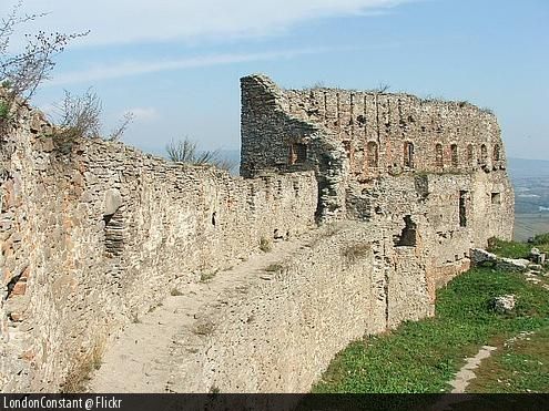 In prezent se mai pastreaza centurile de ziduri intarite cu turnuri patrate sau circulare si cu porti monumentale. De la poarta de intrare principala, se dezvolta zidul inferior de incinta care urca dealul si inconjoara cetatea. Drumul care insoteste zidul conduce la a doua poarta in forma de coridor lung boltit. In dreapta acestei porti se pastreaza urmele camerelor corpului de garda.