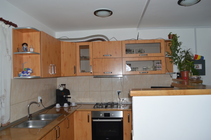 Pensiunea dispune de un salon cu nisa de bucatarie dotata corespunzator.